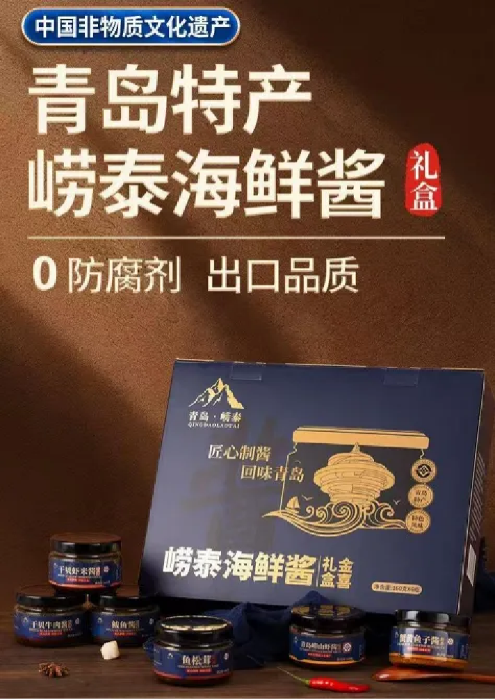 青岛崂泰海鲜酱,以崂山非遗酿造技艺为根,精选北纬38°崂山海域鲜货与崂山矿泉水,融合传统工艺与现代科技,打造0防腐剂、高固形物的正宗青岛海鲜酱,是兼具地域文化、匠心品质与内外贸实力的特色海洋食品品牌。