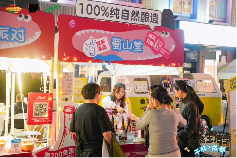 有人钟爱本土的麻辣鲜香,有人惦记来自欧洲的那一口甜蜜,还有人想尝尝异域的街头风味——首日现场,这些念想全被满足了。四大风味美食区香气交织,还没走进现场,就率先感受到美食的香味。于屿城火锅、多肉盒子、巧国源记、杜夫朗格……众多品牌商家也在自家摊位前摆出了免费试吃,光是沿着现场摊位转一圈,肚子就已经填饱了一半;吃饱还不够,优酸乳、歪马送酒&水井坊打造的特装展位现场也热闹得很。打卡互动一个接一个,不仅好玩,还能把各种酒水饮料带回家。