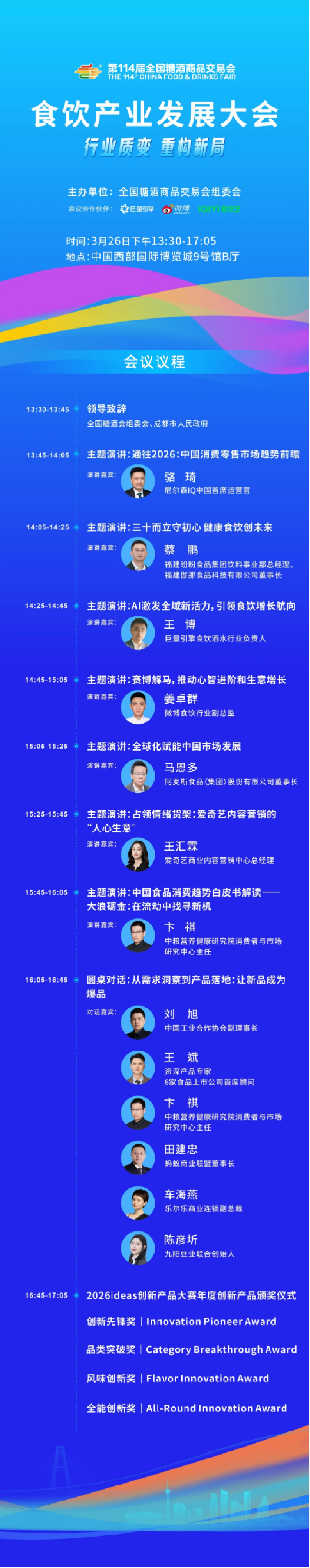 3月26日下午13:30,成都·西博城9号馆B厅,第114届全国糖酒会“食饮产业发展大会” 即将启幕!