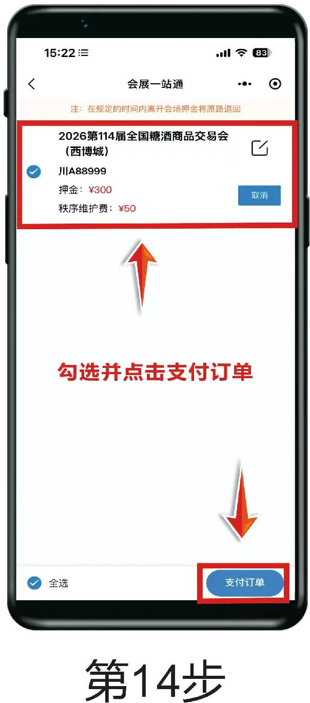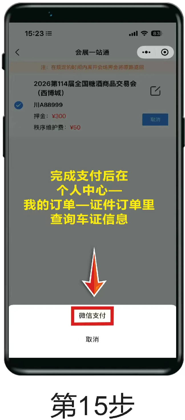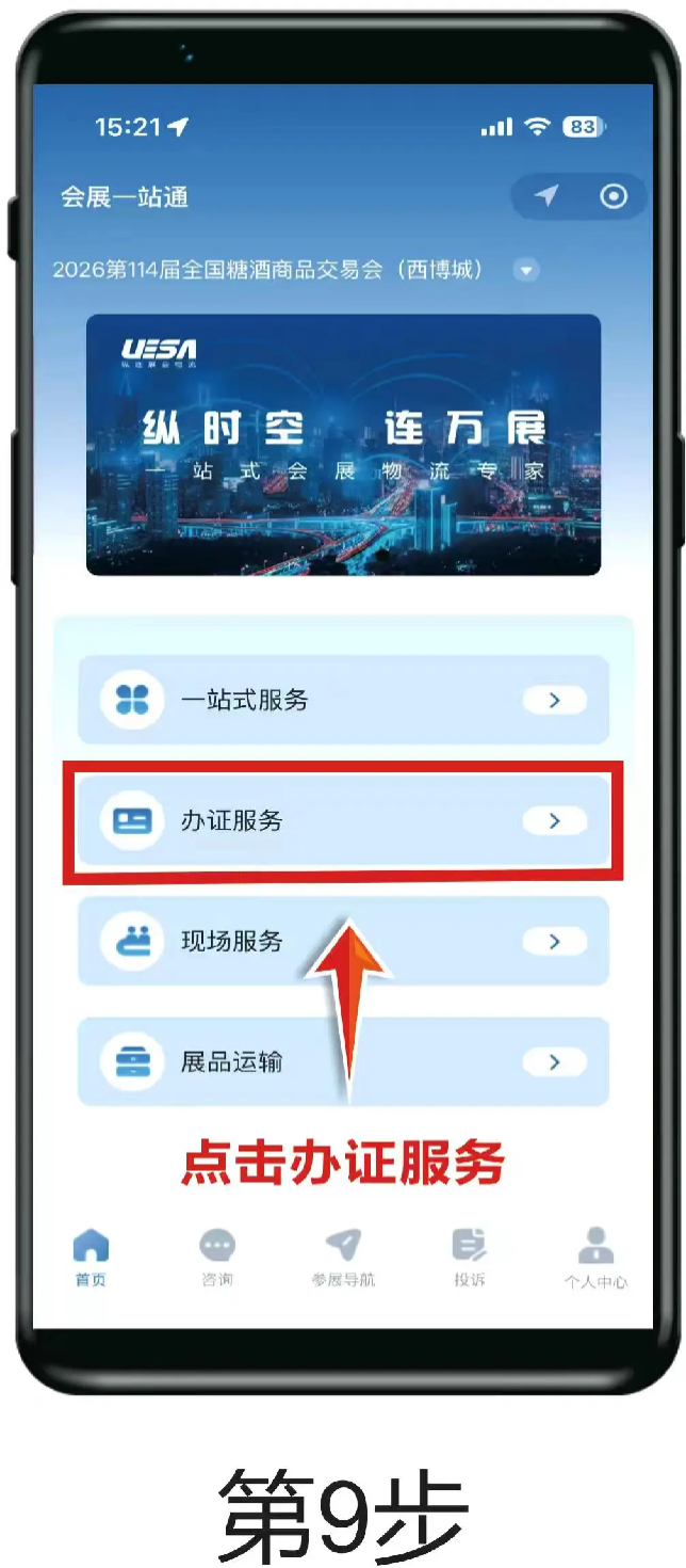 1.下单缴费:微信小程序搜索:纵连展会物流,点击小程序登录后找到“办证服务”,按参会的展区(西博城展会或世纪城展区),选择对应展馆名称和展会名称,提前下单缴费,节省排队候车时间。